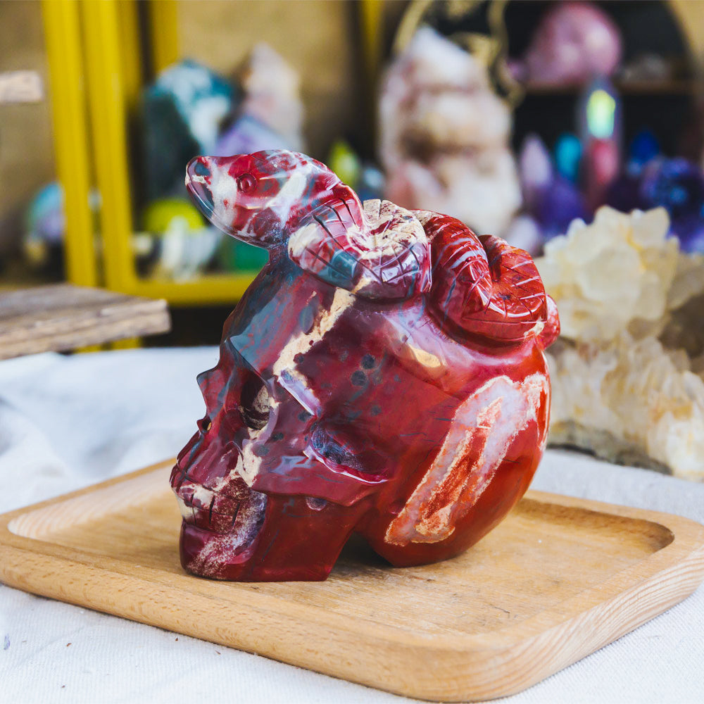 Red Jasper Skull With Snake