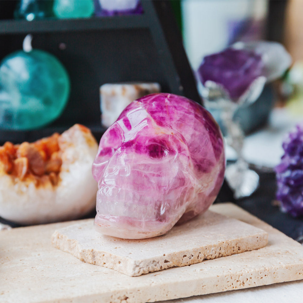 4" Pink Amethyst Skull