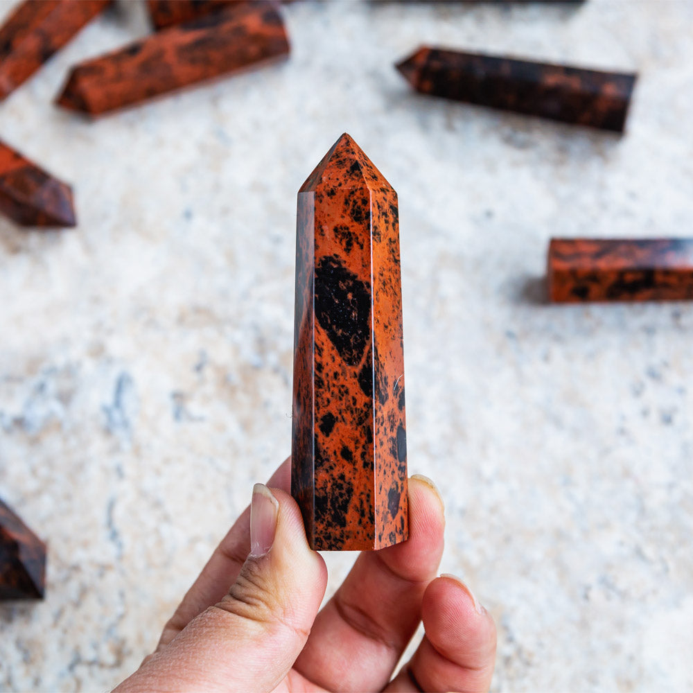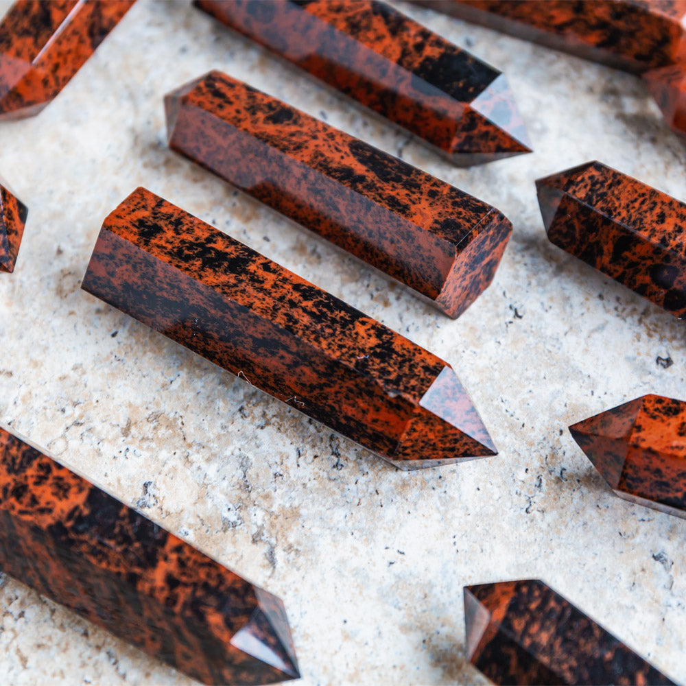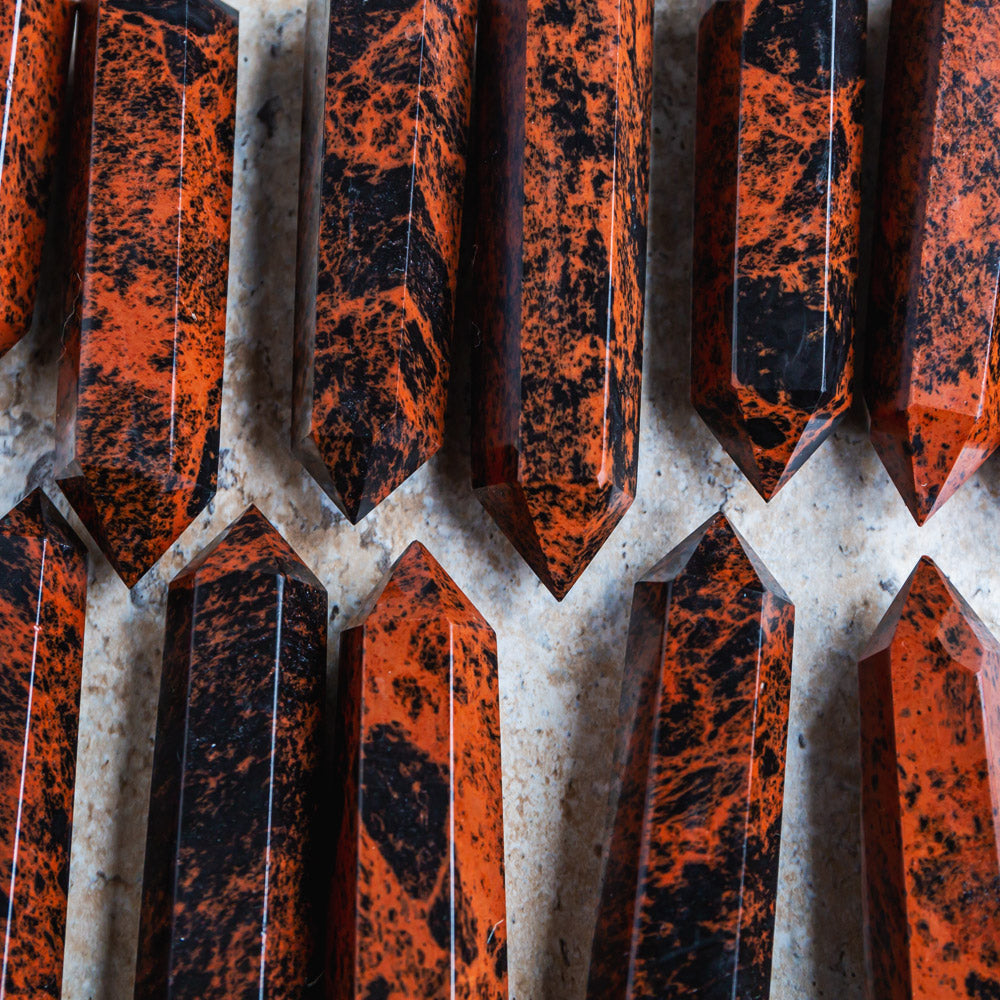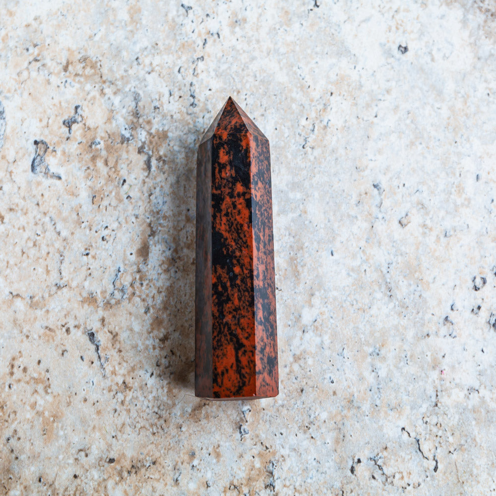 ► The Mahogany Obsidian Point is an excellent tool for cultivating clarity and focus. Its bands of basalt and dacite mingle for a unique, grounding effect. This rock is perfect for aiding in decision-making and reinforcing personalized boundaries.