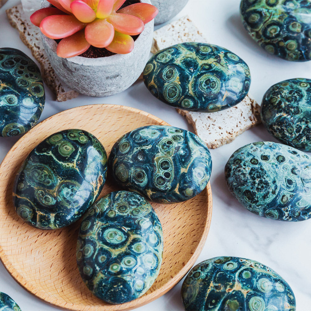 ► Kambamba Jasper is an excellent stone for the procrastinator who needs a little encouragement. It works on the Crown and Third Eye chakras to stimulate creativity and insightful thinking. Believers say it encourages progress and change while boosting self-esteem and confidence. Use it for meditation, wear it, or keep it in the home.