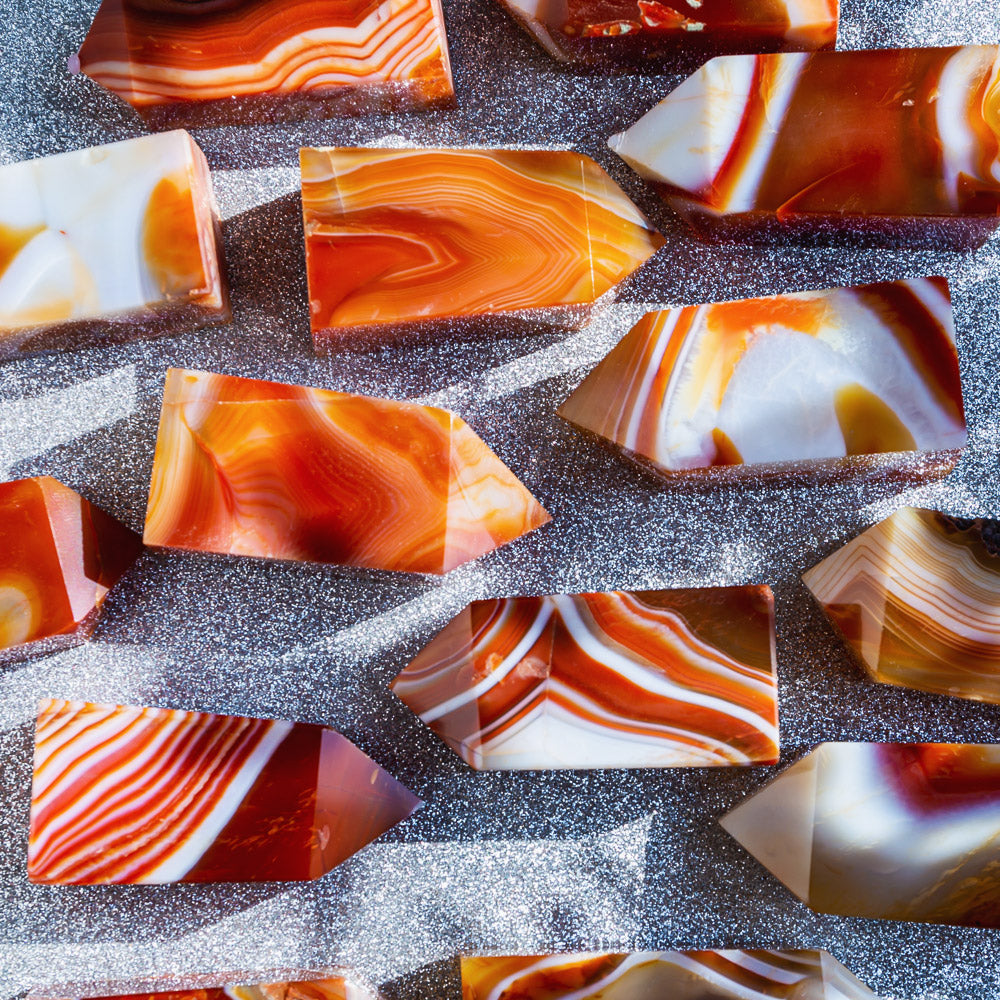 ►Sardonyx Point is a unique natural stone composed of sard and onyx. It has a unique striped pattern and is known for its durability, making it a popular choice for jewelry and decorative applications. The striations are distinguished and create a beautiful complexity, giving Sardonyx Point a depth and multidimensional allure that cannot be found in other stones.