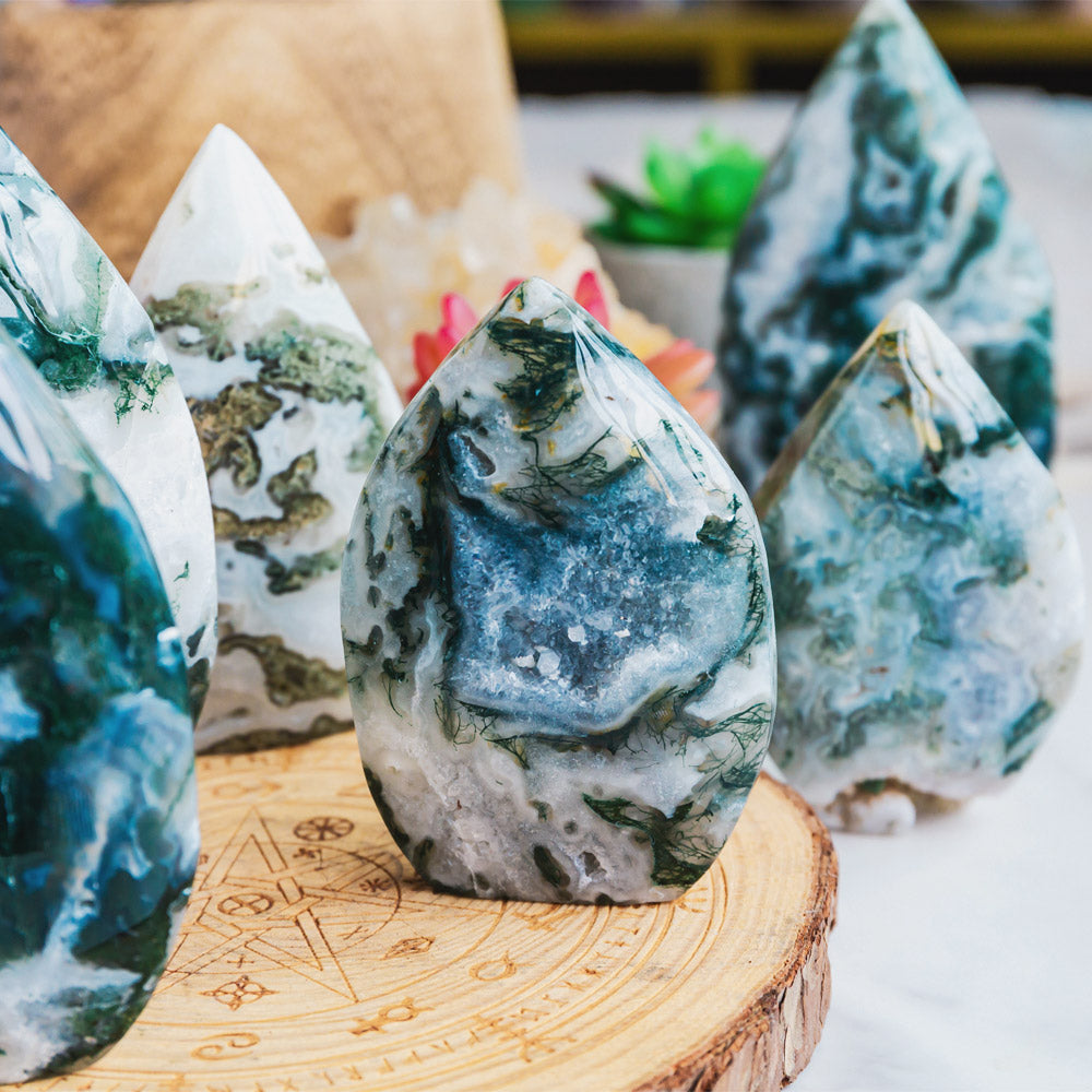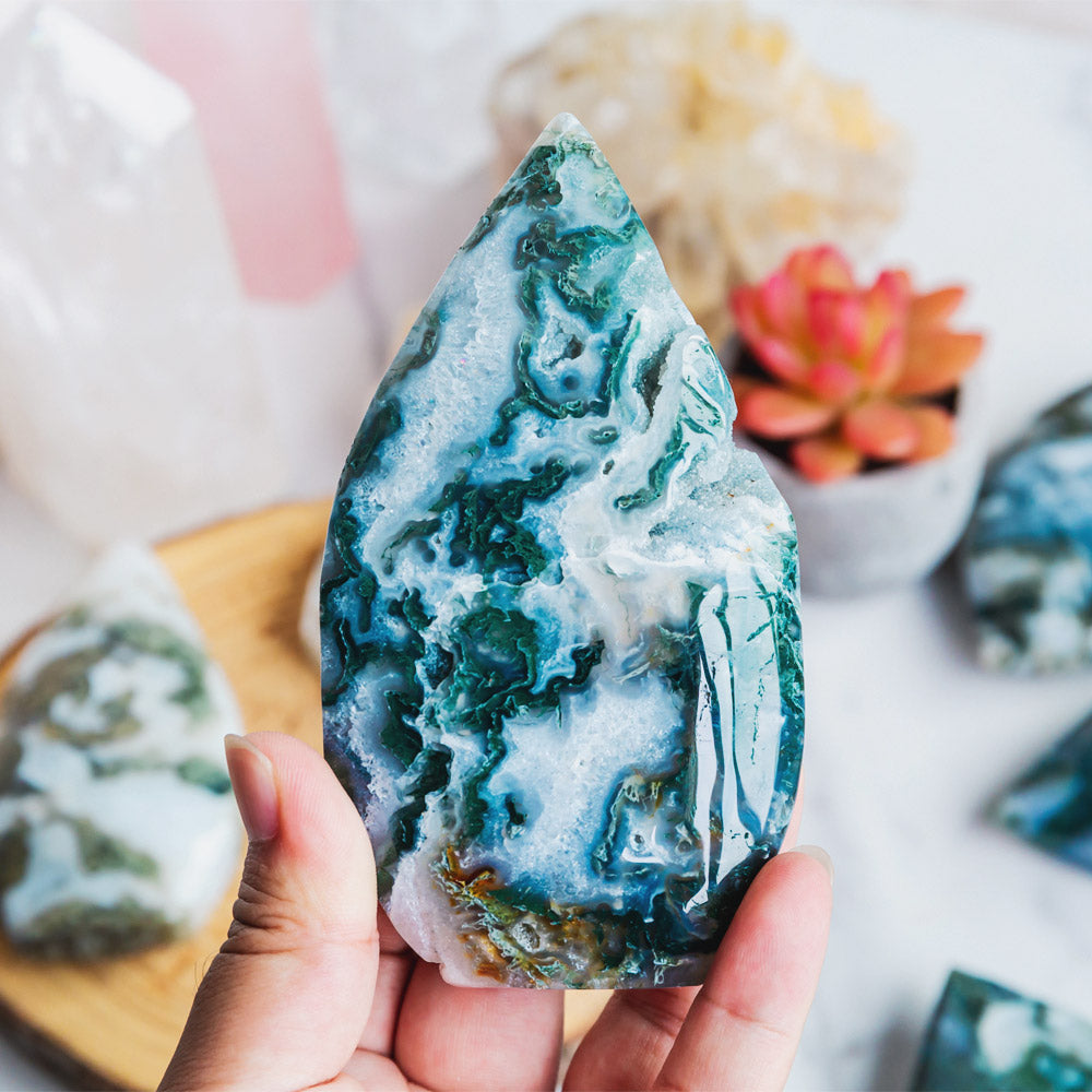 ►Moss Agate is a wonderful crystal known for its ability to help enrich and flourish as well as inspire creativity. This is a beneficial time of stress, as its steady energy can help those who feel unstable or groundless. It enhances mental concentration, perseverance and endurance.