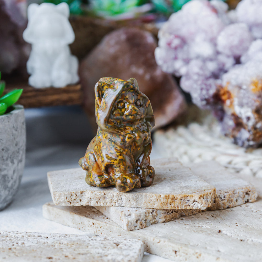►Ajooba Jasper is an opaque form of Chalcedony, which is a microcrystalline variety of the mineral Quartz.It often contains an abundance of impurities, and therefore some regard it as a rock instead of a mineral. Jasper is usually associated with brown, yellow, reddish colors, but may be used to describe other opaque colors of Chalcedony such as dark or mottled green and orange. The name jasper derived from a Greek word iaspis meaning 'spotted or speckled stone' because of jasper's speckled varieties.Ajooba stones are very special indeed. Ajooba means “one of a kind” in Urdu and that certainly is how these amazing stones should be described. Ajooba Jasper is also called Fruit Jasper or Conglomerate Jasper. Fruit jasper sourced from the interior of India that has held people dumbfounded with wonder. Chemical Formula: SiO2; Hardness: 6.5 - 7; Color: Green, Yellow, Brown, Red, Orange.