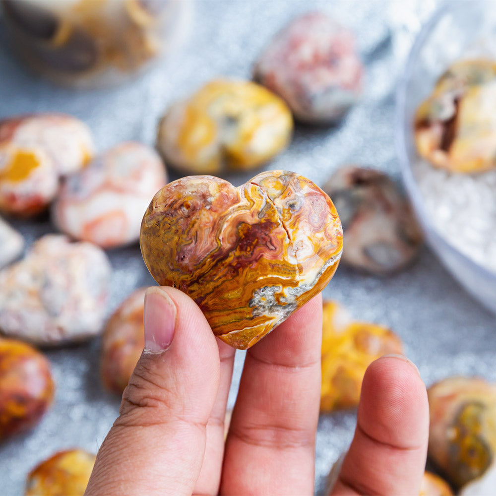 ► This Crazy Lace Agate Heart is a stunning and unique statement piece. With its intricately patterned and vibrantly hued surface, it is sure to stand out in any collection. This piece has a smooth, polished finish and is a great size for display on desk or counter.