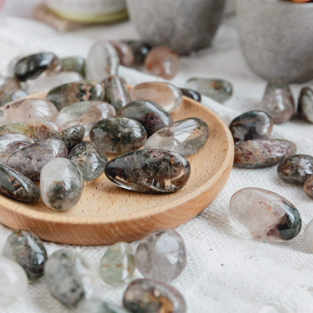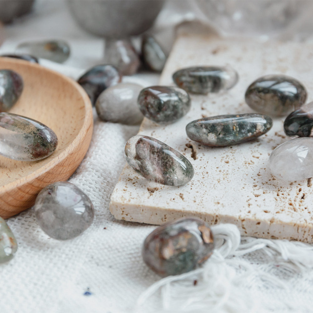 ►Garden Quartz is about spiritual growth. It is a kind of crystal connected with all chakras, cleans blockages, cleanses your aura, and invites energy to flow.Garden Quartz are strongly associated with the Third Eye & Crown Chakras but will remove energy blockages from any of the other Chakras.