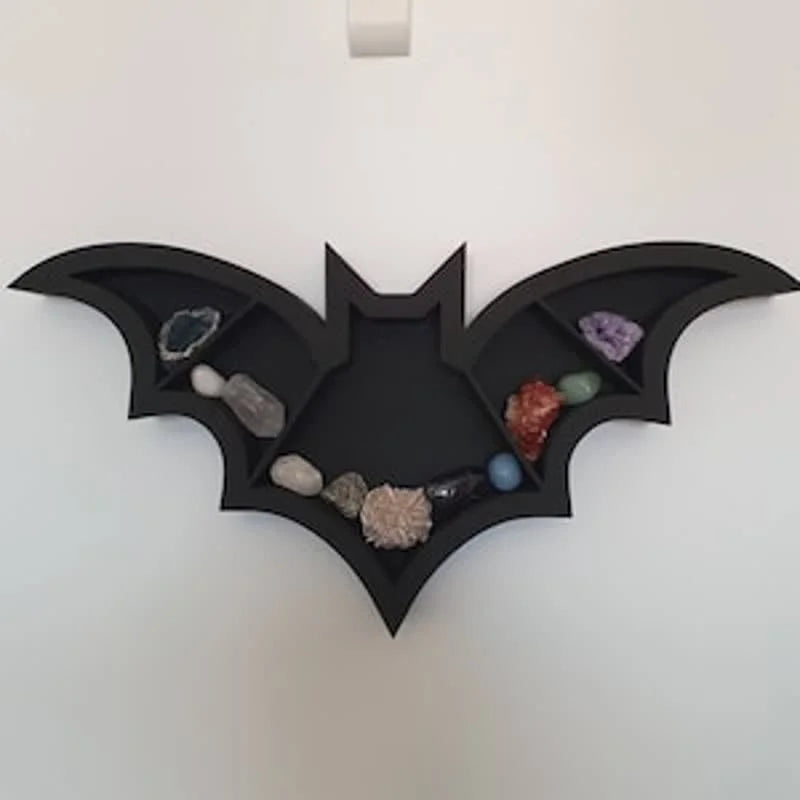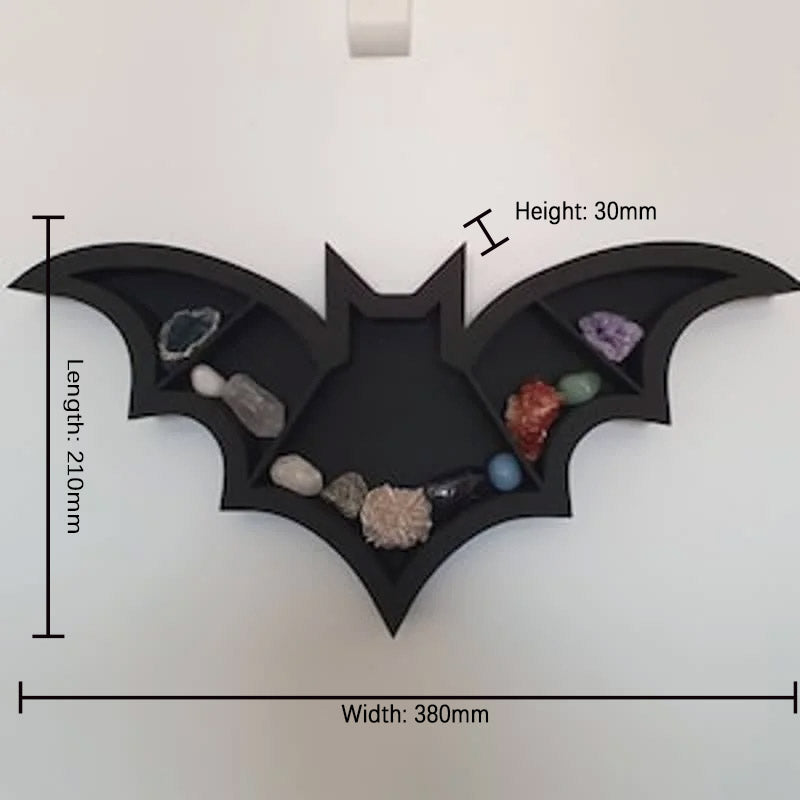 This Bat Shaped Wooden Crystal Shelf will be an eye-catching decor for your space. The size is perfect for small crystals, candles, bracelets, or any other treasures you would like to display.