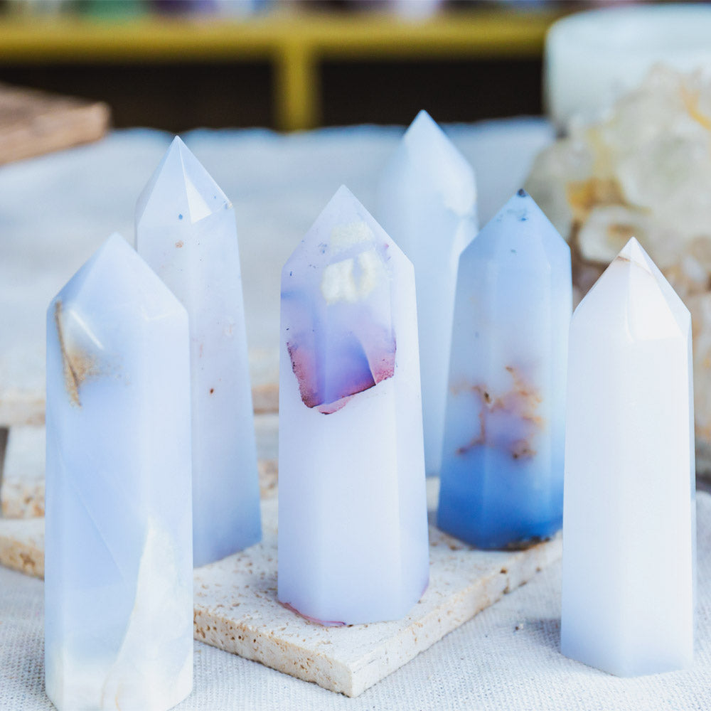 ►Blue Chalcedony is a wonderful crystal known for its ability to help enrich and flourish as well as inspire creativity. This is a beneficial time of stress, as its steady energy can help those who feel unstable or groundless. It enhances mental concentration, perseverance and endurance.