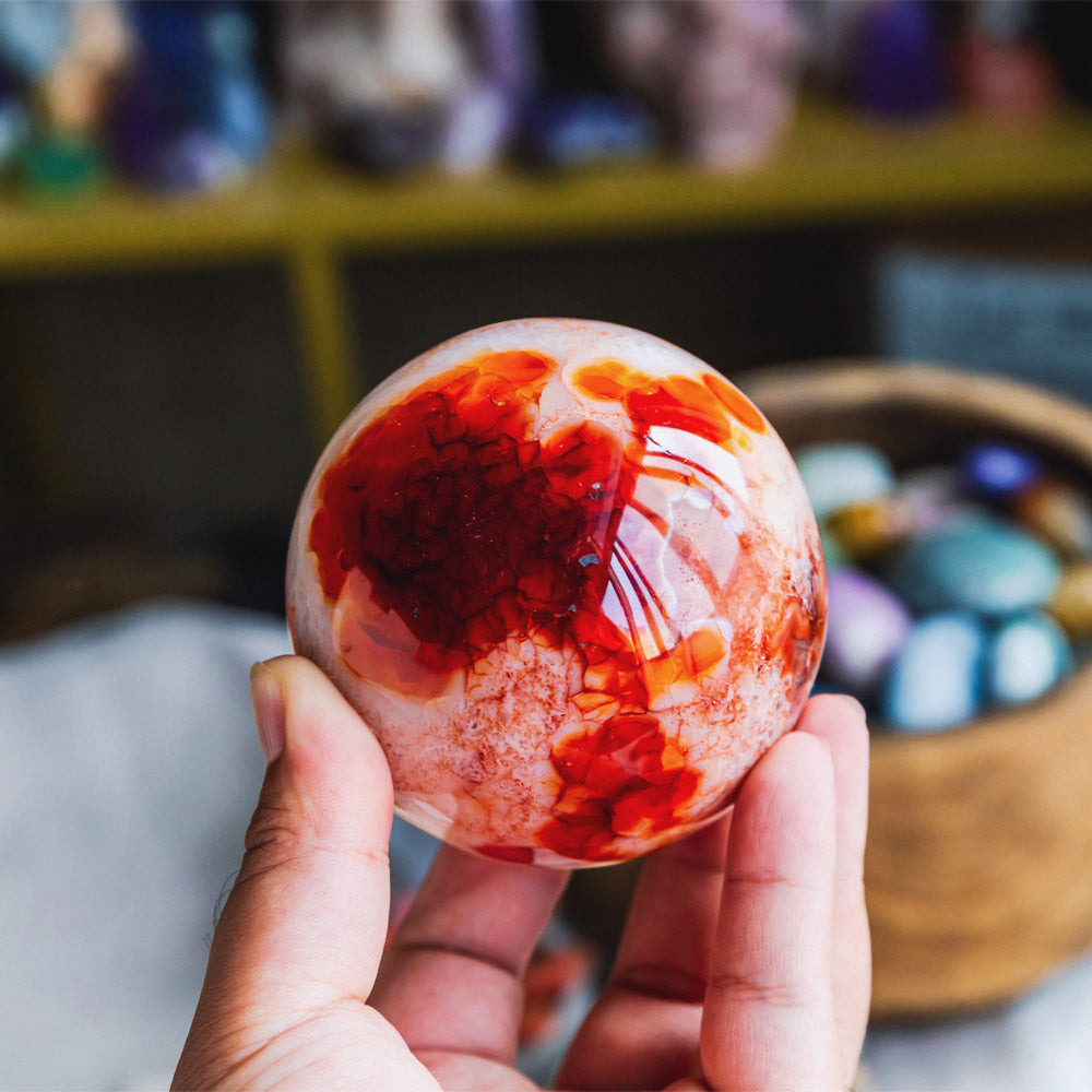 ► These orange, reddish-brown carnelian spheres are the perfect energy crystal to bring home. They boost your energy and activate the root/foundation chakra.