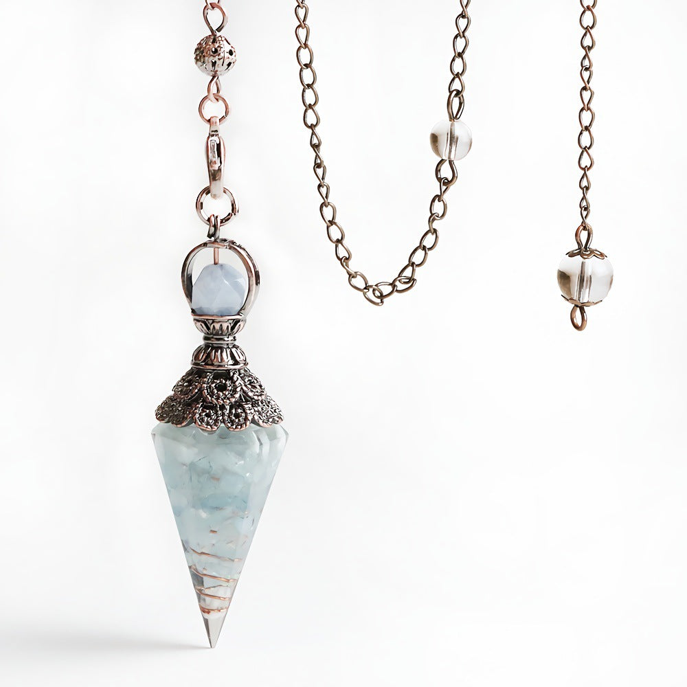 - 【SPECIFICATIONS】The length of crystal stone Pendulum is about 62-64mm(2.44"-2.51"),width is about 17-18mm(0.67"-0.7").Chain length is approx.9.4" and whole length of the pendant is about 11.12".High quality natural crystal chip stone and resin.