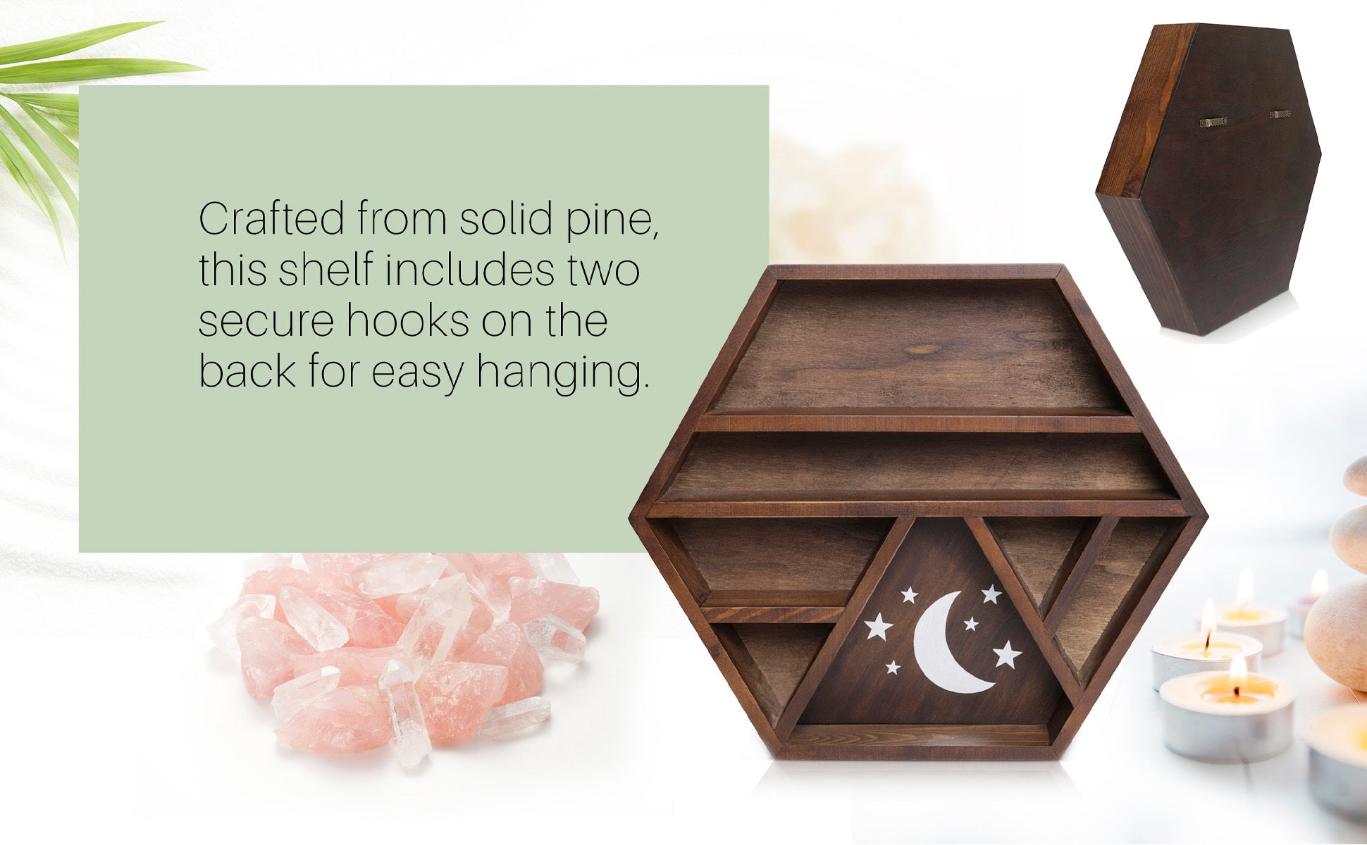 - 💎 Painted by Hand for Harmony – Your crystal shelf display elevates any practice with hand-painted moon and stars designed to match styles from boho to goth and rituals from yoga to prayer.
