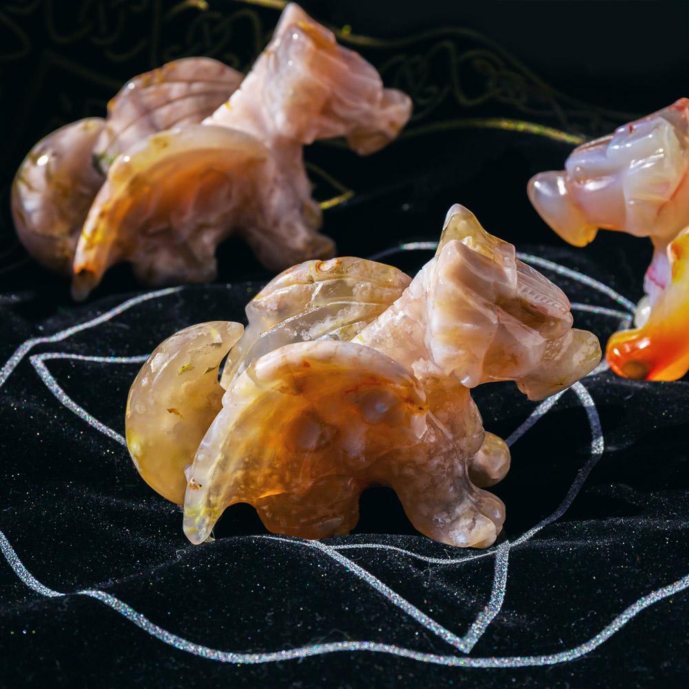 ► Often used to enhance meditation, inspiration, and the healing properties of natural gems and minerals, our Fine Flower agate fly dragon is comfortable to hold and may help to you to cultivate peace, relaxation, and quiet.