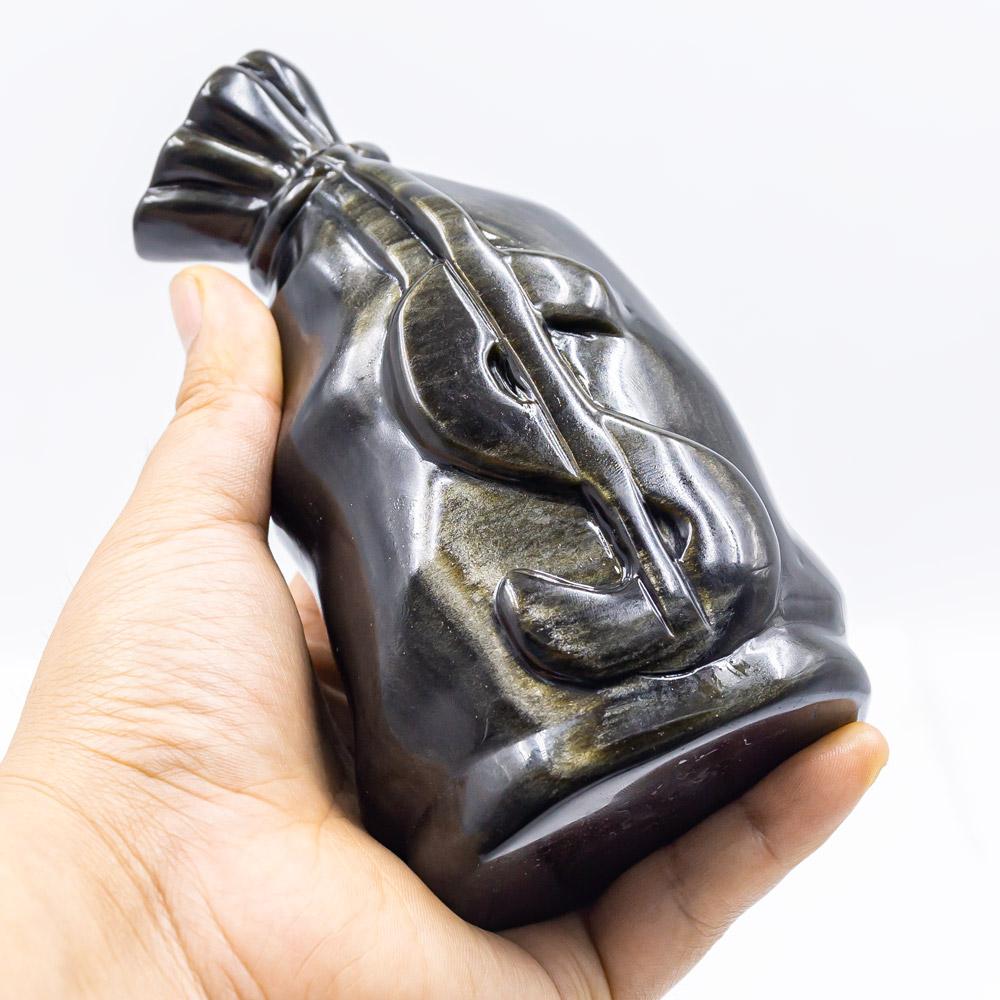 ► Beautifully Carved Fine Art: Natural gemstone sculpted with our exclusive Golden obsidian money bag design .