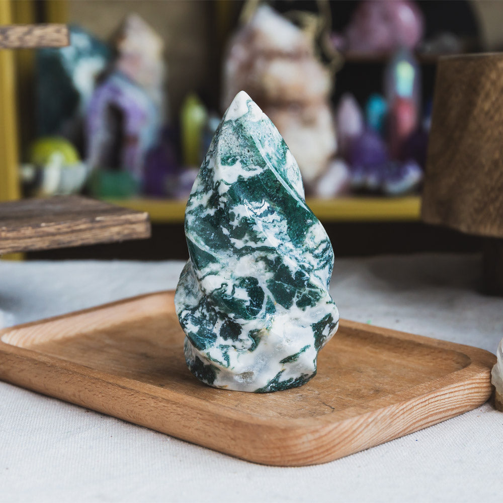 ►Creativity:Moss agate is a wonderful crystal known for its ability to help enrich and flourish as well as inspire creativity. This is a beneficial time of stress, as its steady energy can help those who feel unstable or groundless. It enhances mental concentration, perseverance and endurance.
