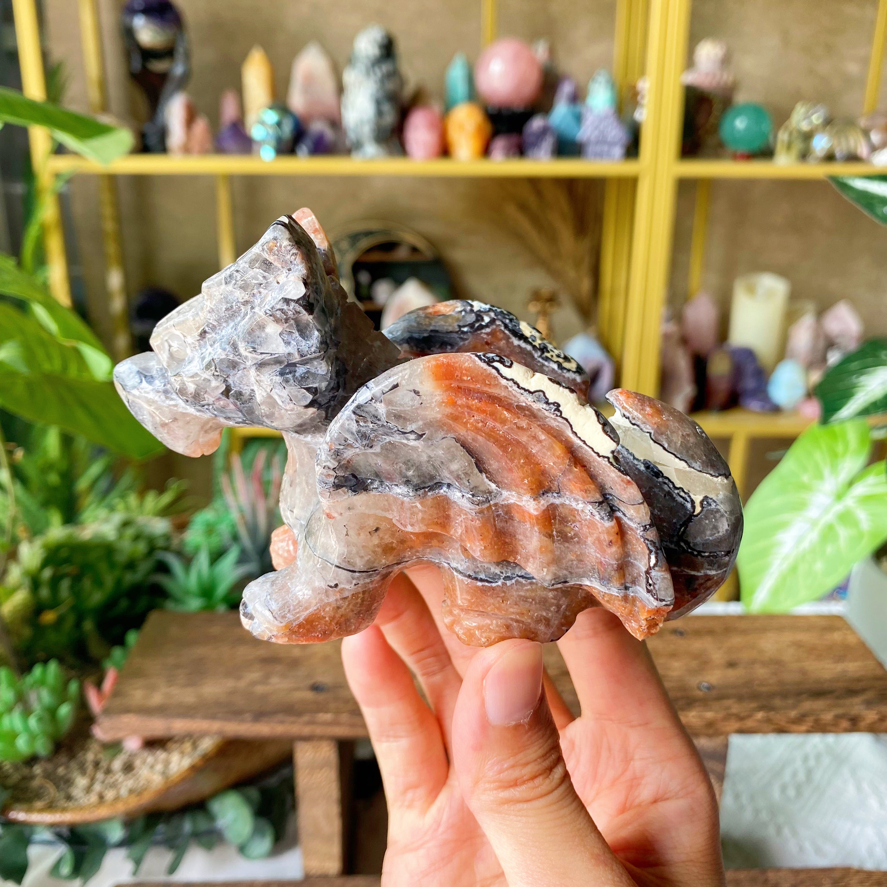 ►Ocean Jasper can bring positive energy and enhance happiness. Strengthen the heart and allow energy to flow properly through the heart chakra. This healing stone allows you to see through hallucinations and identify your dreams, goals, and more. It is particularly associated with the heart chakra, enhancing vitality and triggering feelings of love. It is also believed to be connected to the throat and solar plexus chakras. Having a ocean Jasper is said to benefit fertility, communication and confid.【Rainbow Moonstone Dog】